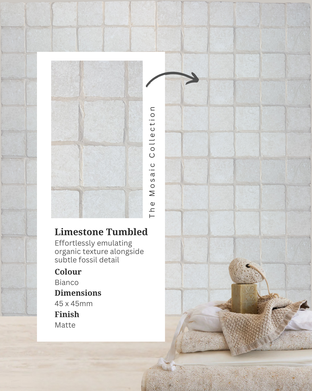 Tactile, timeless and beautifully detailed, Limestone Tumbled offers a natural extension of our Limestone aesthetic in a format that feels both crafted and contemporary.